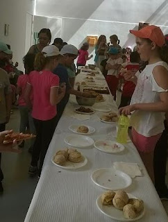 Seguiu-se o lanchinho, com tudo o que têm direito: sandochas, morangos, piza, bolos, bolachas e... gomas :)